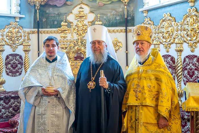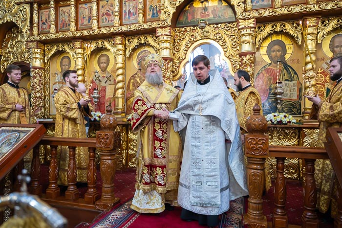 После херувимской песни митрополит Александр совершил священническую хиротонию диакона Владислава Пашкова, клирика Никольского собора, кандидата богословия, заведующего церковно-практической кафедрой Алма-Атинской духовной семинарии и сотрудника информационно-издательского отдела Митрополичьего округа.