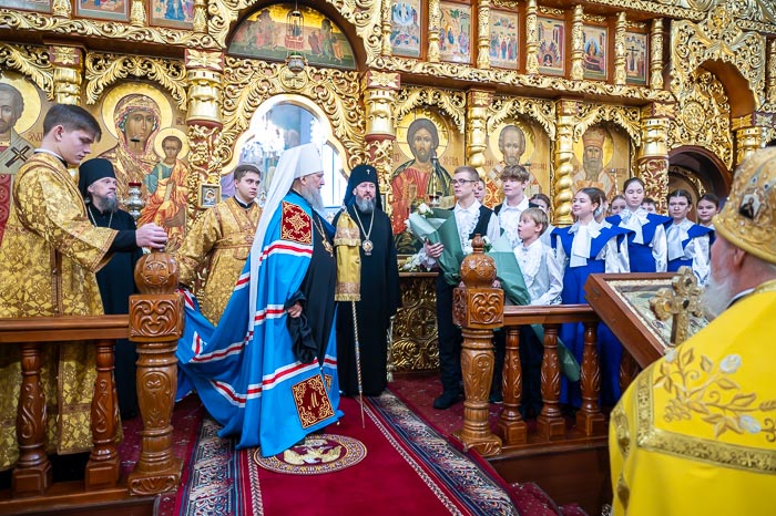 Богослужебные песнопения исполняли: хор Никольского собора под управлением О. Берекешевой и обиходный хор под управлением О. Соломоновой.