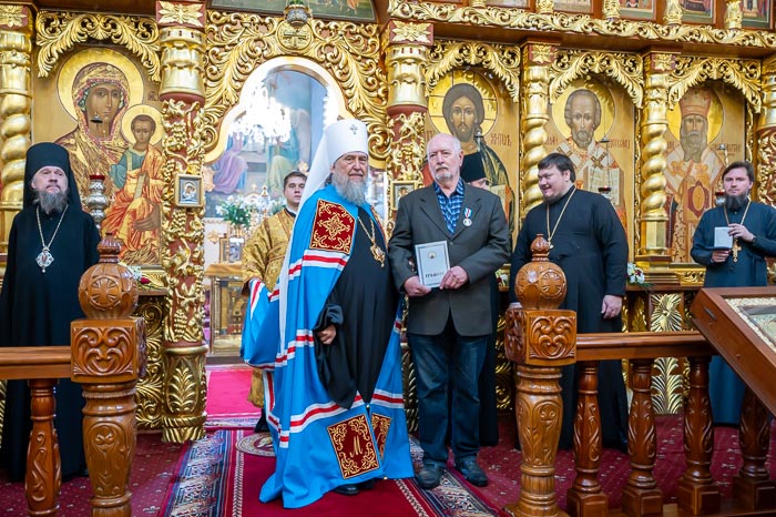 Митрополит Александр удостоил автора монумента и благотворителей Никольского собора медалей «Енбек Үшiн» (За труды).