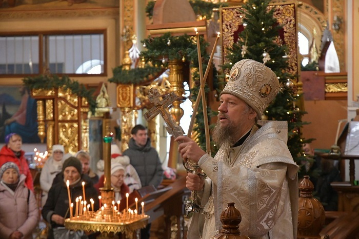 Накануне вечером иерарх совершил в Никольском соборе всенощное бдение с литией.